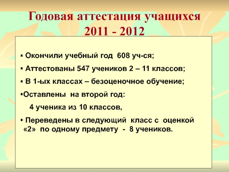 Переведены в следующий класс с оценкой «2» по одному предмету - 8 учеников.