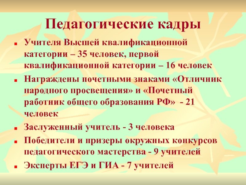 Награждены почетными знаками «Отличник народного просвещения» и «Почетный работник общего образования РФ» - 21 человек