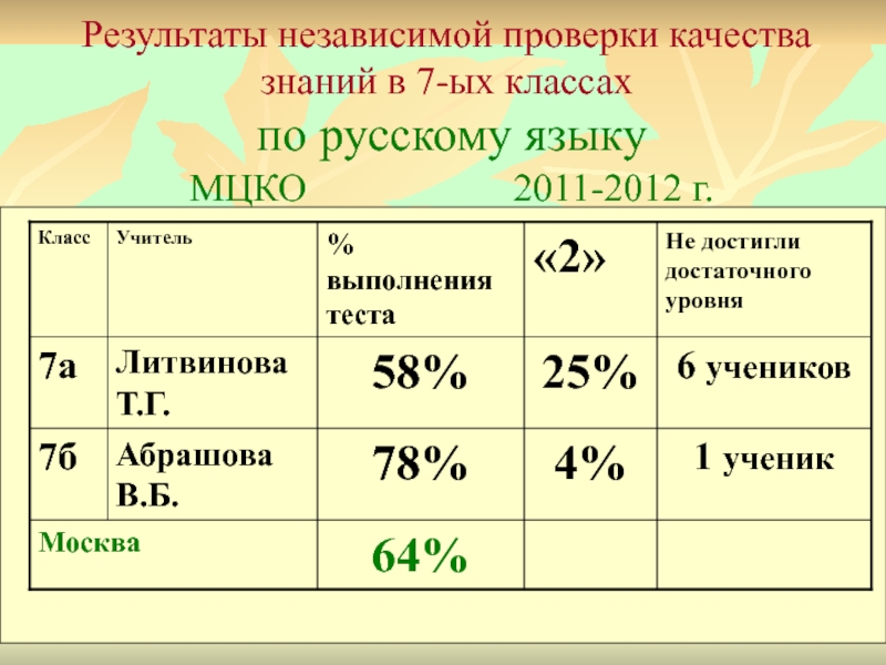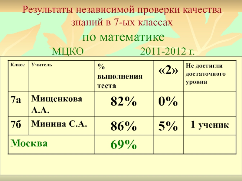 Результаты независимой проверки качества знаний в 7-ых и 8 классах