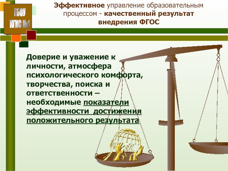 Доверие и уважение к личности, атмосфера психологического комфорта, творчества, поиска и ответственности – необходимые показатели эффективности достижения положительного результата