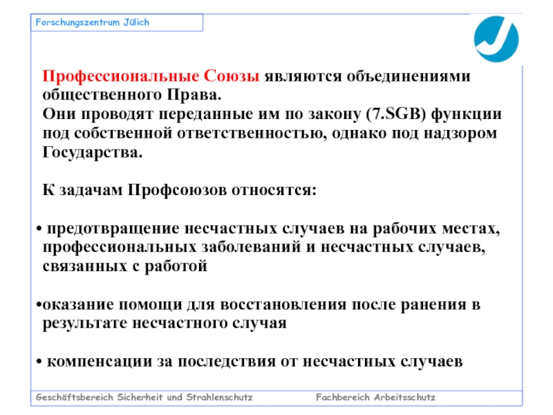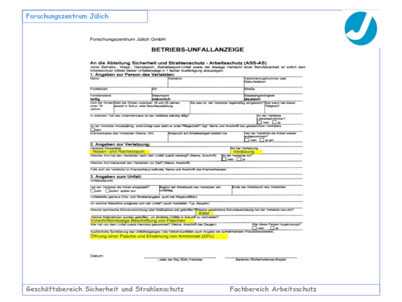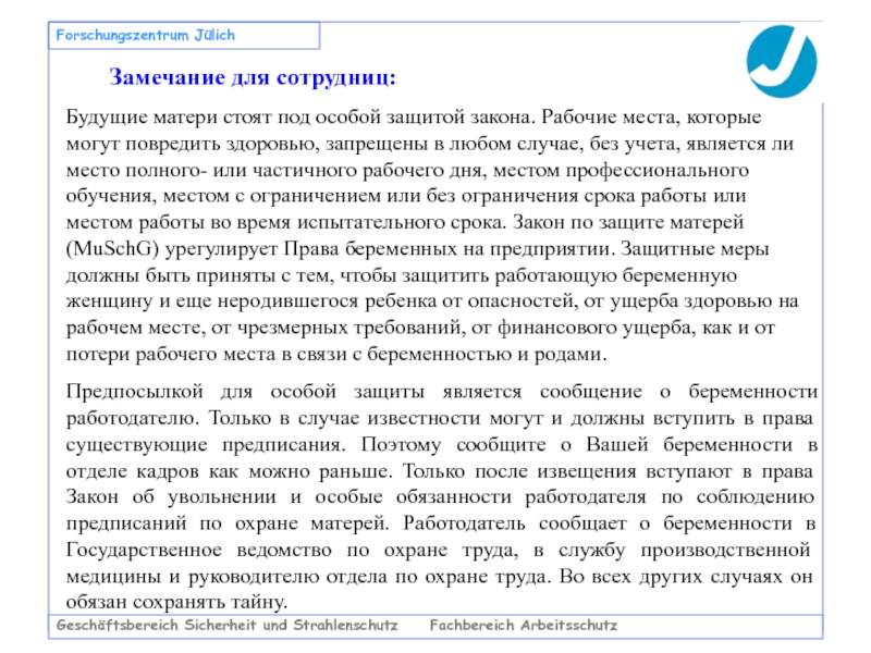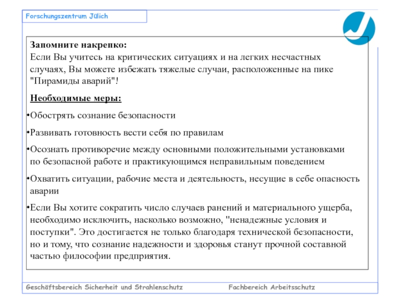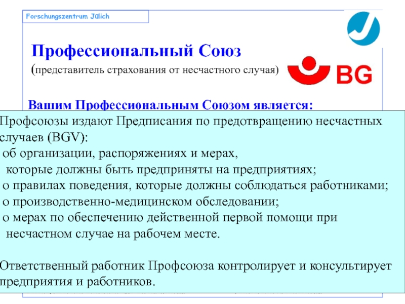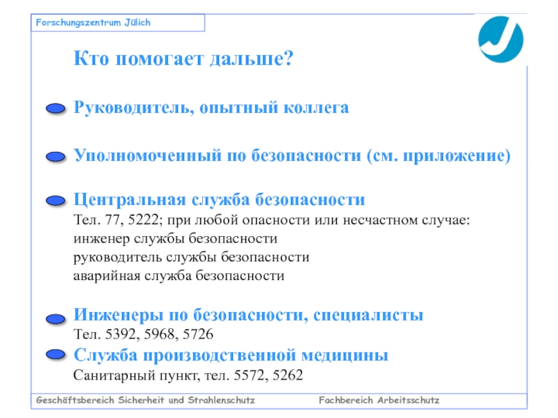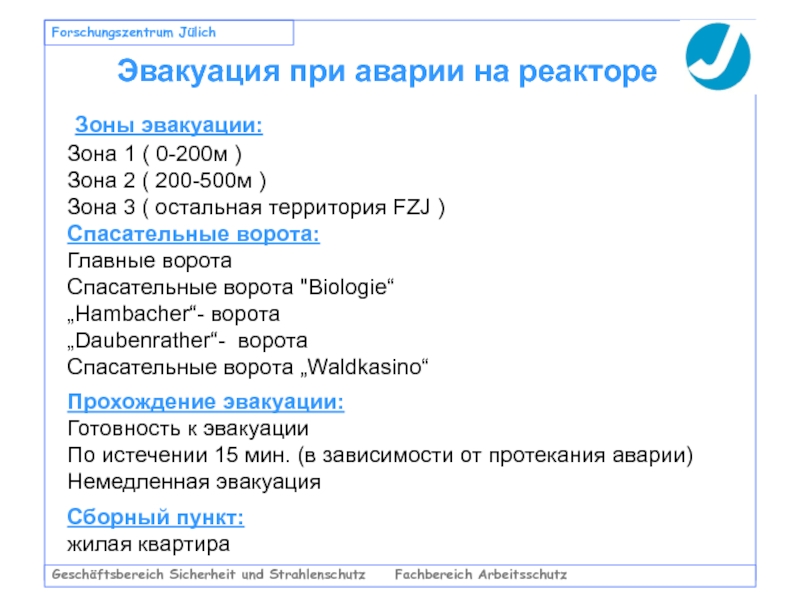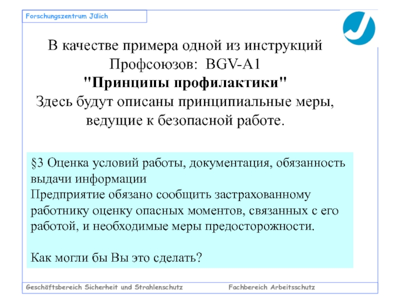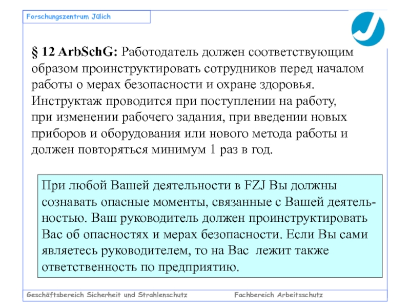 Кроме того будут даны важные указания Oрганизации по защите от несчастных случаев FZJ.
