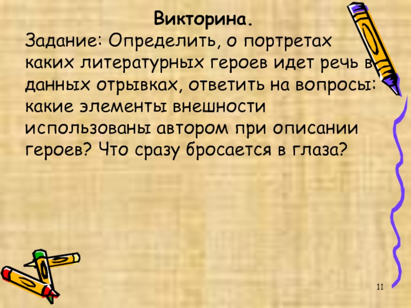 Задание: Определить, о портретах каких литературных героев идет речь в