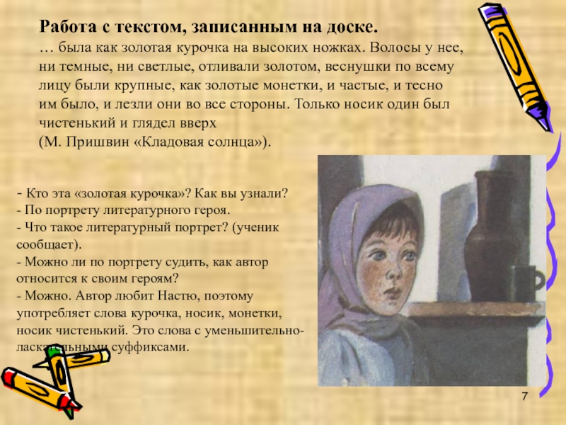 - Можно. Автор любит Настю, поэтому употребляет слова курочка, носик, монетки, носик чистенький. Это слова с уменьшительно-ласкательными суффиксами.