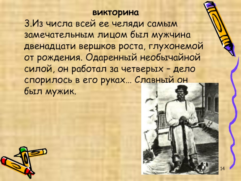 3.Из числа всей ее челяди самым замечательным лицом был мужчина двенадцати