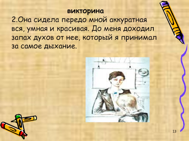 2.Она сидела передо мной аккуратная вся, умная и красивая. До меня