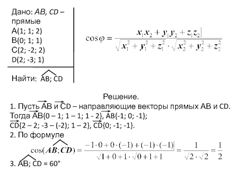 1. Пусть АВ и СD – направляющие векторы прямых АВ и CD.