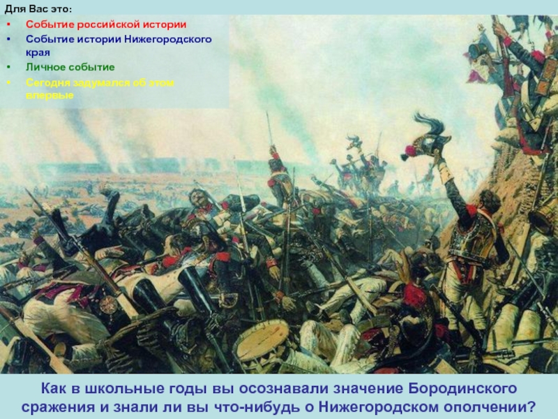 Как в школьные годы вы осознавали значение Бородинского сражения и знали ли вы что-нибудь о Нижегородском ополчении?