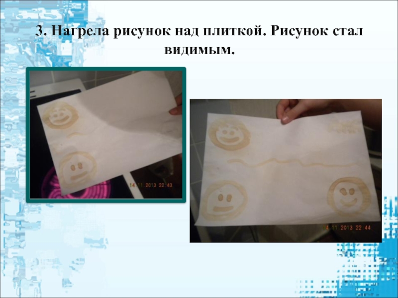 Слайд 63. Нагрела рисунок над плиткой. Рисунок стал видимым.