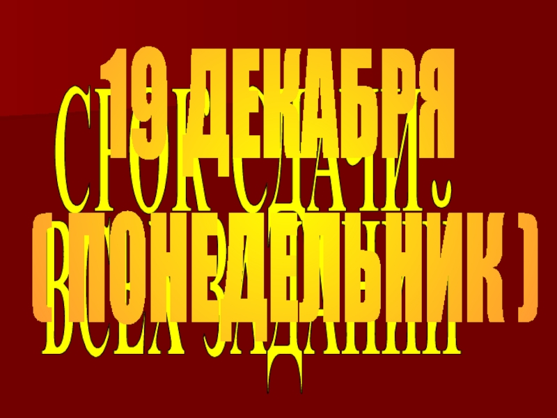 19 ДЕКАБРЯ ( ПОНЕДЕЛЬНИК )