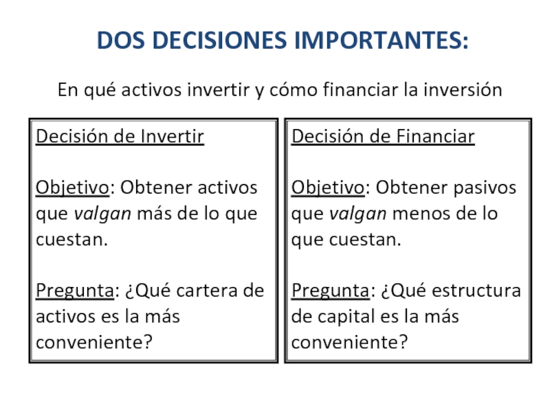 LA TOMA DE DECISIONES EN FINANZAS CORPORATIVAS