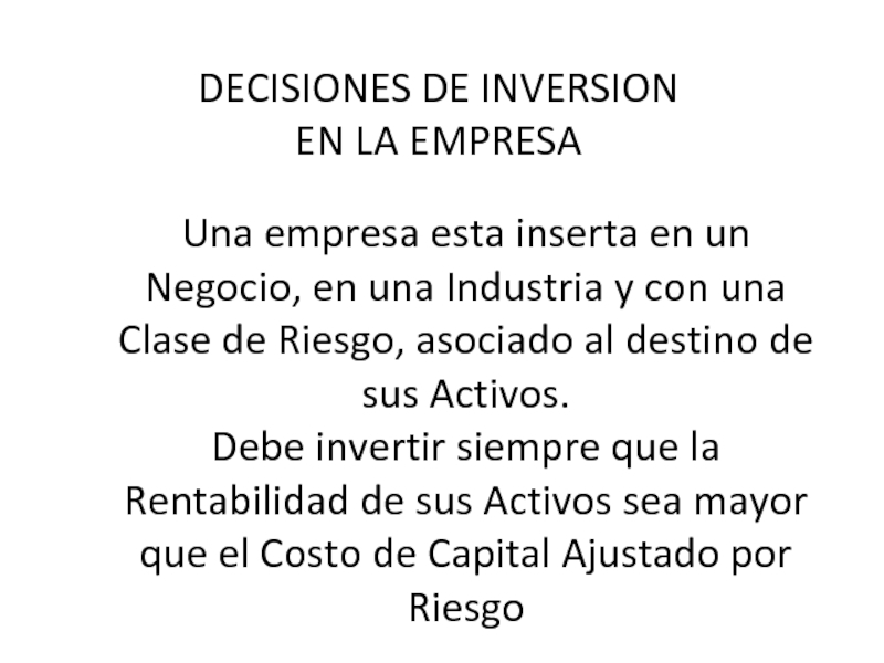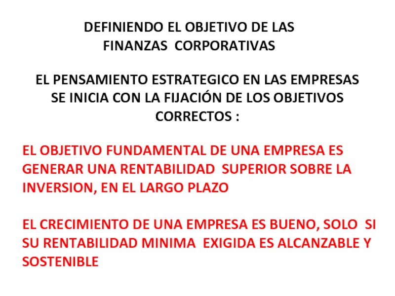 EL OBJETIVO FUNDAMENTAL DE UNA EMPRESA ES GENERAR UNA RENTABILIDAD SUPERIOR SOBRE LA INVERSION, EN EL LARGO PLAZO