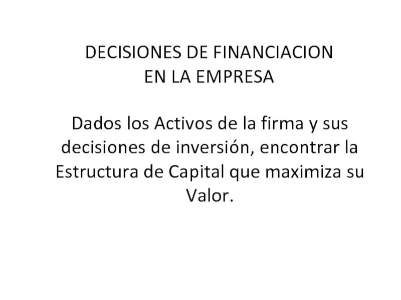 La DECISION de FINANCIAMIENTO : el tipo y mezcla óptima de DEUDA y