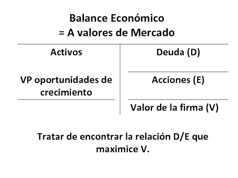 La MEZCLA OPTIMA de Deuda y Capital debe maximizar el valor