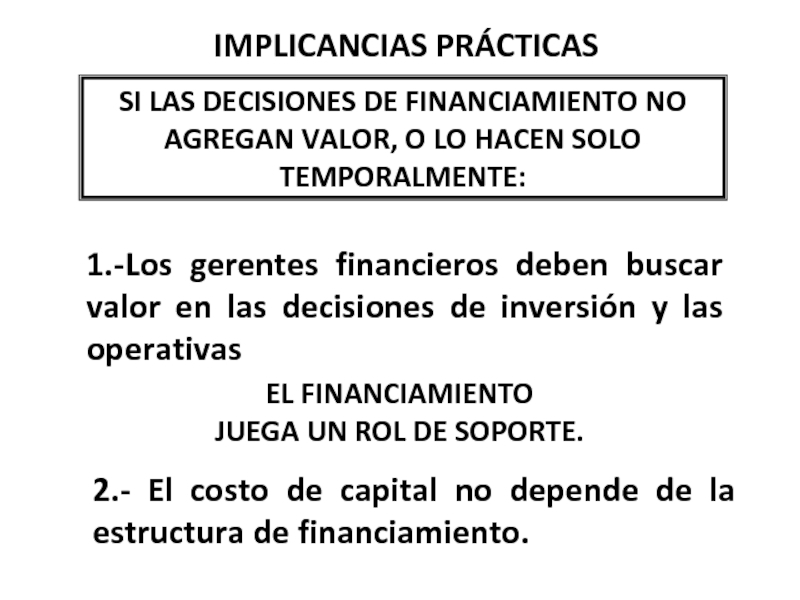 2.- El costo de capital no depende de la estructura de financiamiento.