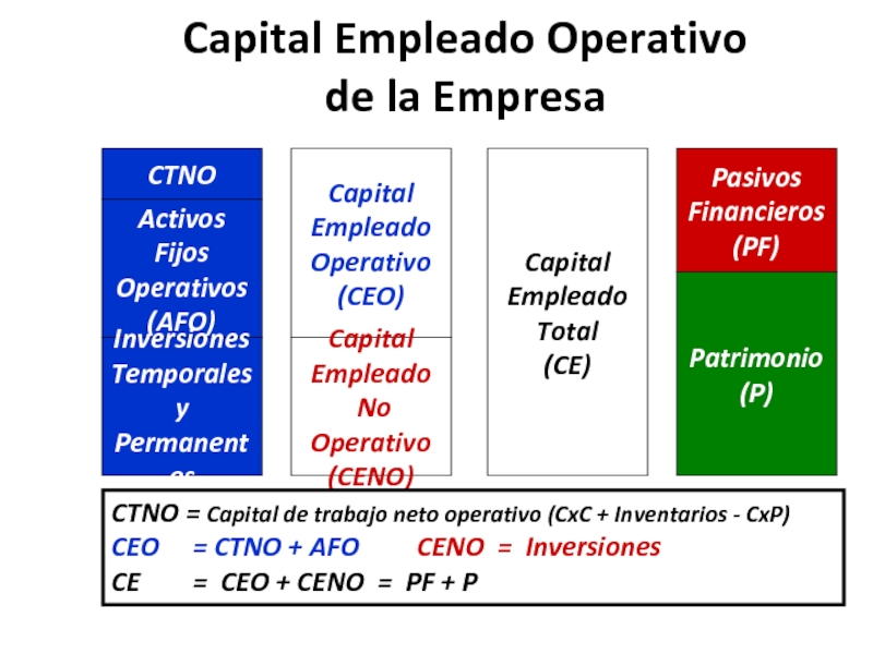 CTNO = Capital de trabajo neto operativo (CxC + Inventarios - CxP)
