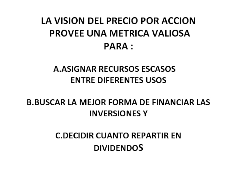 La DECISION de DIVIDENDOS : Repartir = la empresa no tiene opciones que renten la Tasa Mínima Aceptable