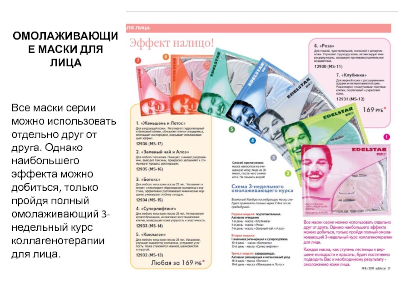 Слайд 25ОМОЛАЖИВАЮЩИЕ МАСКИ ДЛЯ ЛИЦА