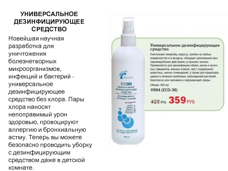 Слайд 10УНИВЕРСАЛЬНОЕ ДЕЗИНФИЦИРУЮЩЕЕ СРЕДСТВО