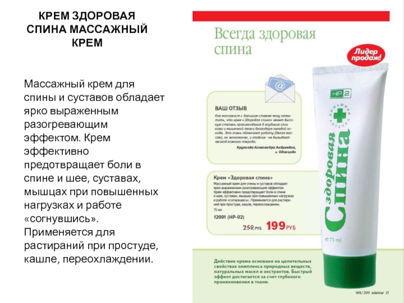 Слайд 17КРЕМ ЗДОРОВАЯ СПИНА МАССАЖНЫЙ КРЕМ
