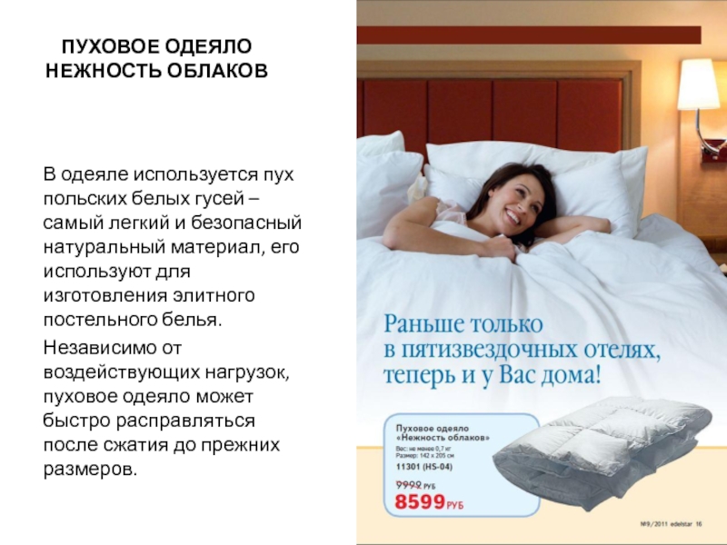 Слайд 15ПУХОВОЕ ОДЕЯЛО НЕЖНОСТЬ ОБЛАКОВ