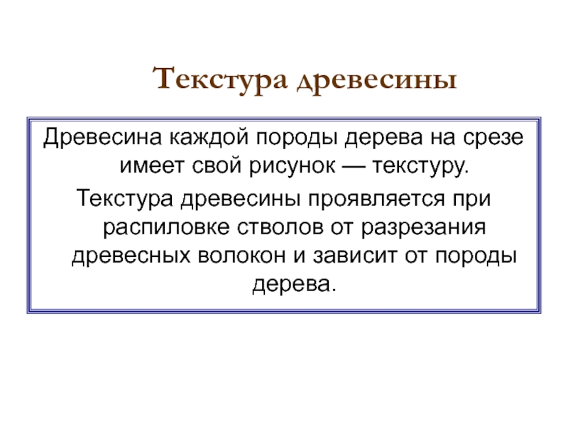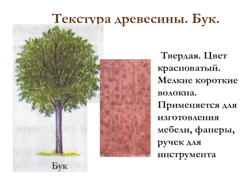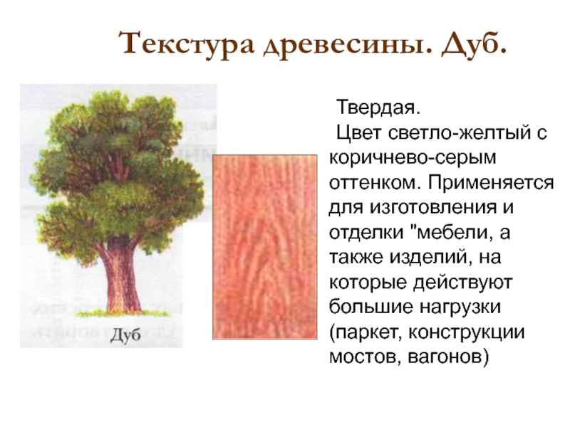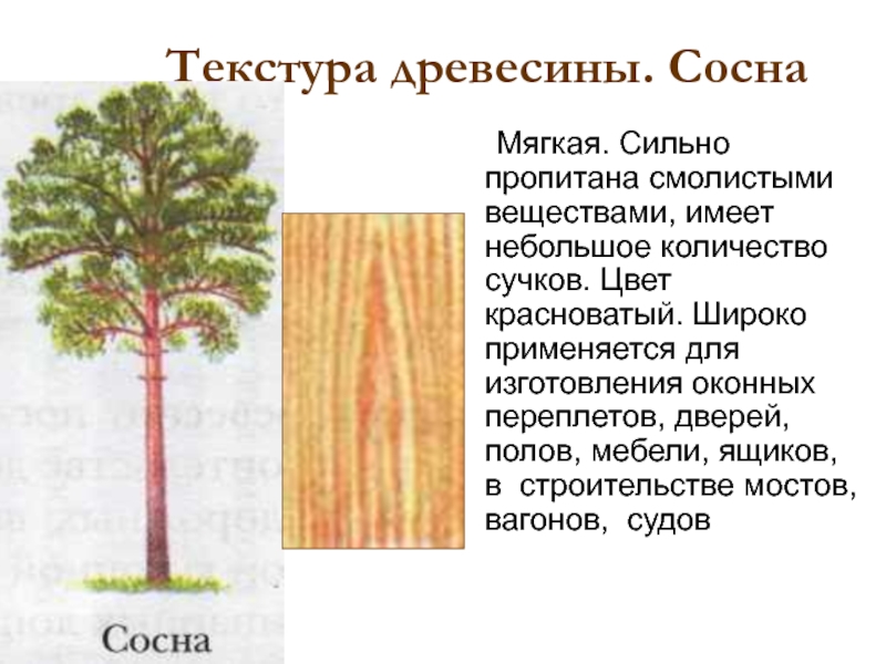 Различают древесину хвойных пород (сосна, ель, кедр, лиственница) и лиственных (дуб,береза, клен, осина, липа).
