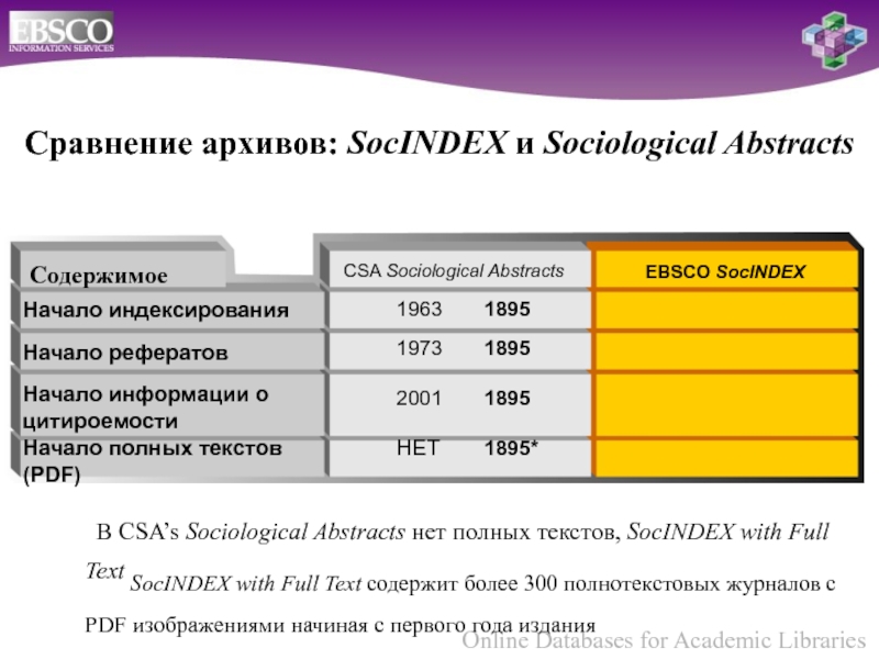 Сравнение архивов: SocINDEX и Sociological Abstracts