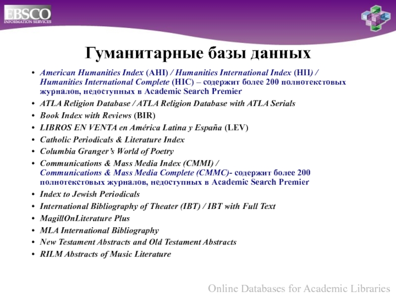 Научные базы данных EBSCO -