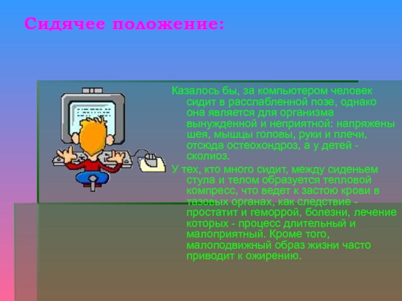 Казалось бы, за компьютером человек сидит в расслабленной позе, однако
