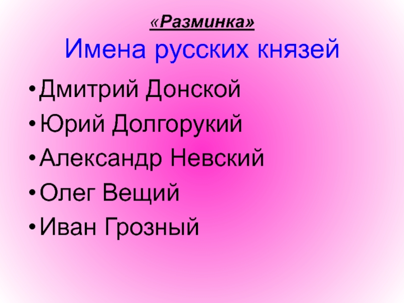 Слайд 6«Разминка» Имена русских князей
