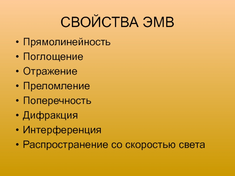 Слайд 3СВОЙСТВА ЭМВ