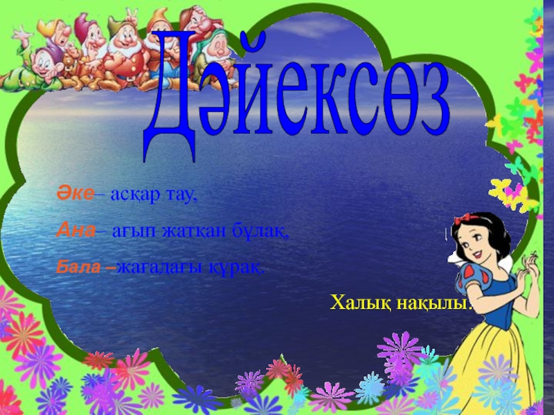 Адал жеміске ,ата-ана жеміс ағашына ұқсайды,Жеміс ағашын жақсы қарап күткендей,ата-анаңды аялап бақсаң,армандарың орындалады.