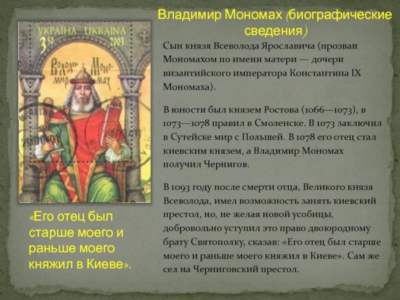 «Его отец был старше моего и раньше моего княжил в Киеве».