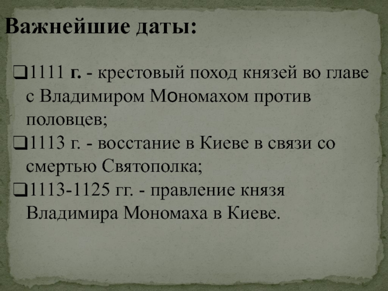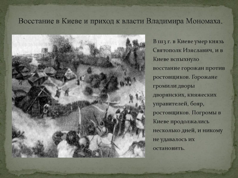 Восстание в Киеве и приход к власти Владимира Мономаха.