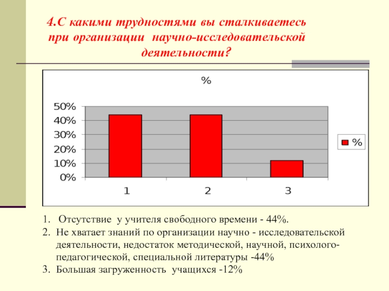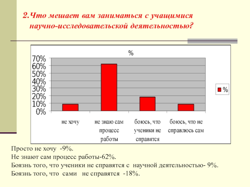 Боязнь того, что ученики не справятся с научной деятельностью- 9%.