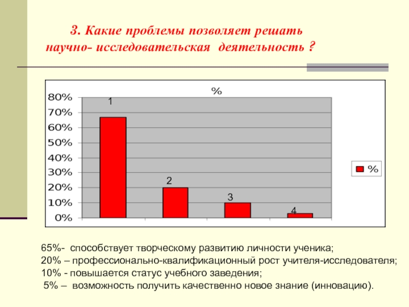 20% – профессионально-квалификационный рост учителя-исследователя; 10% - повышается статус учебного заведения;