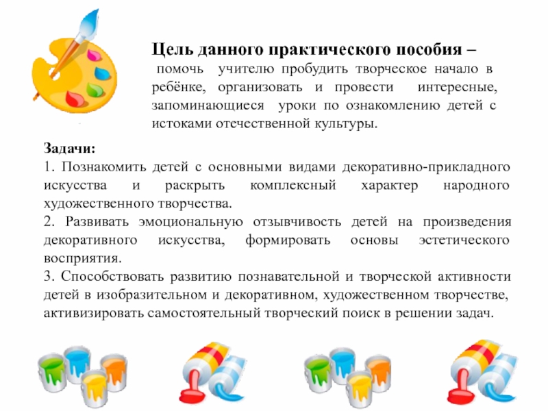 помочь учителю пробудить творческое начало в ребёнке, организовать и провести интересные, запоминающиеся уроки по ознакомлению детей с истоками отечественной культуры.