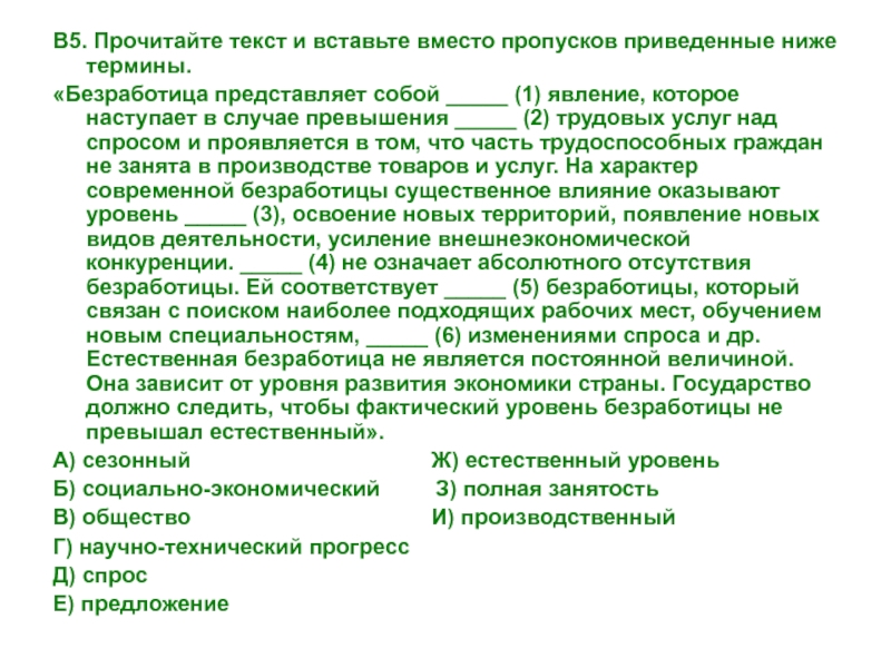 Слайд 16В5. Прочитайте текст и вставьте вместо пропусков приведенные ниже термины.