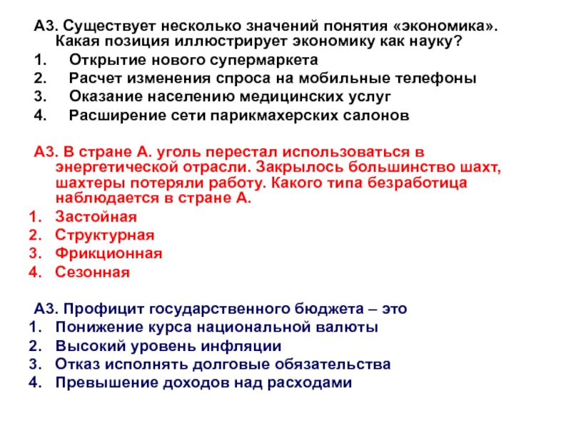 Слайд 1А1. Существует несколько значений понятия «экономика». Какая позиция иллюстрирует экономику как