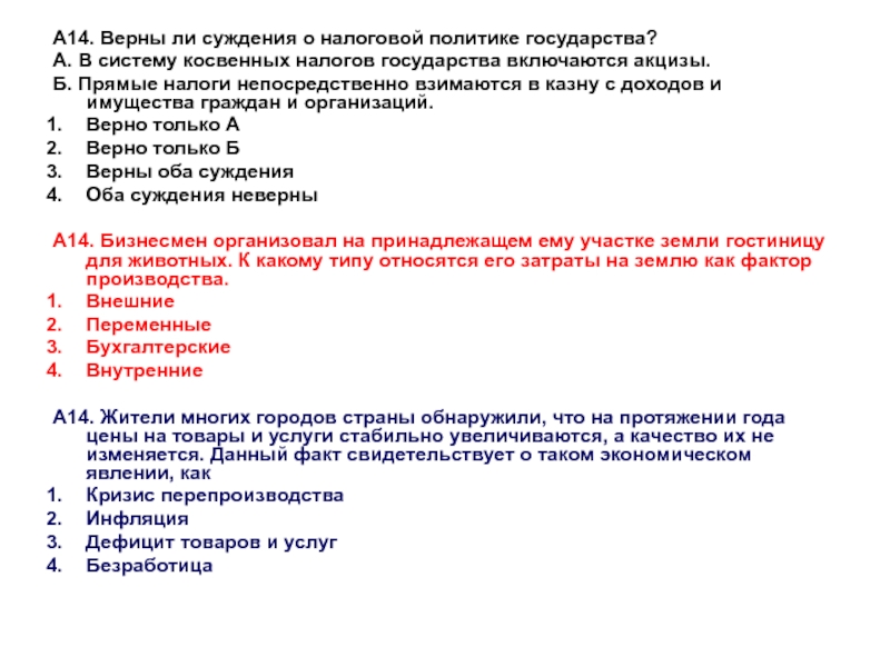 Слайд 11А14. Верны ли суждения о налоговой политике государства?