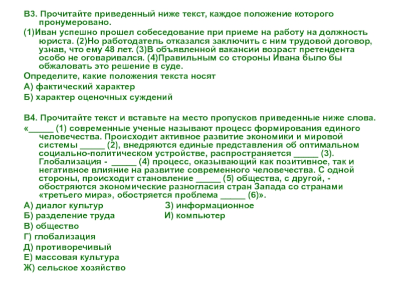 Слайд 15В3. Прочитайте приведенный ниже текст, каждое положение которого пронумеровано.