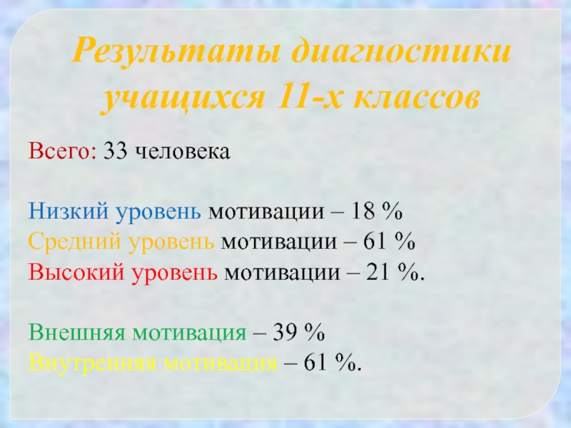 Слайд 7Результаты диагностики учащихся 11-х классов