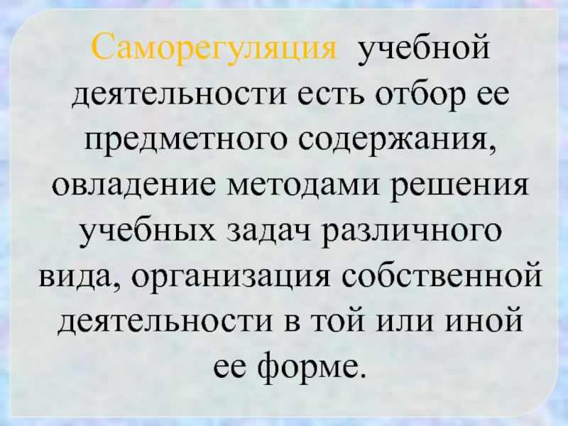 Слайд 26Саморегуляция учебной деятельности есть отбор ее предметного содержания, овладение методами решения