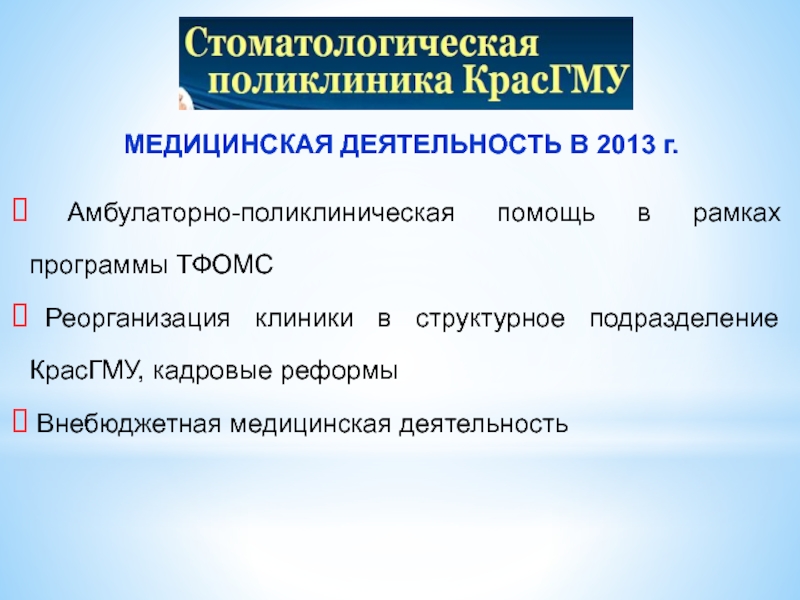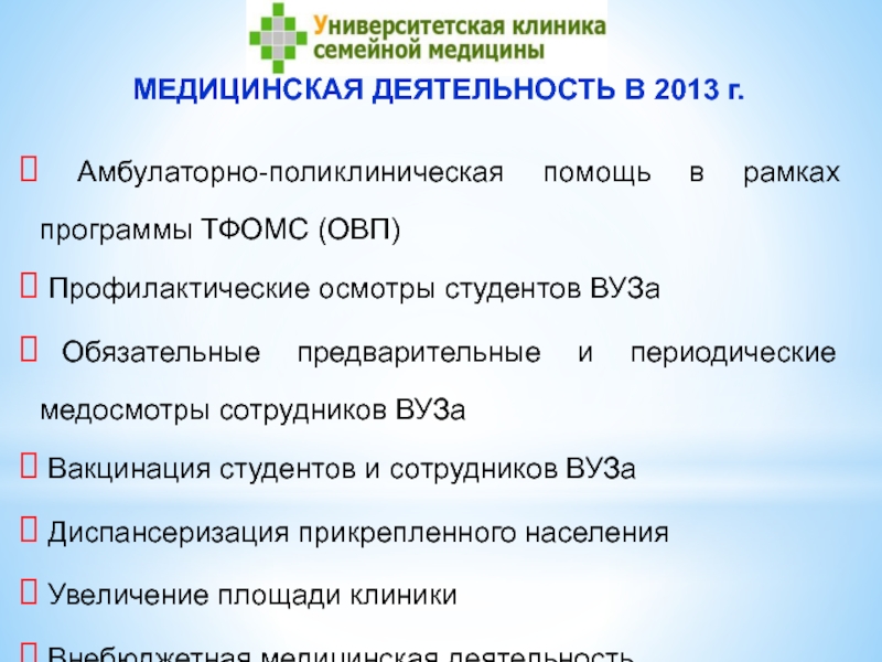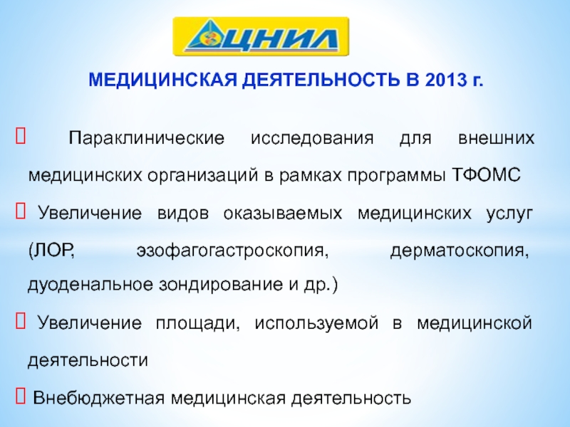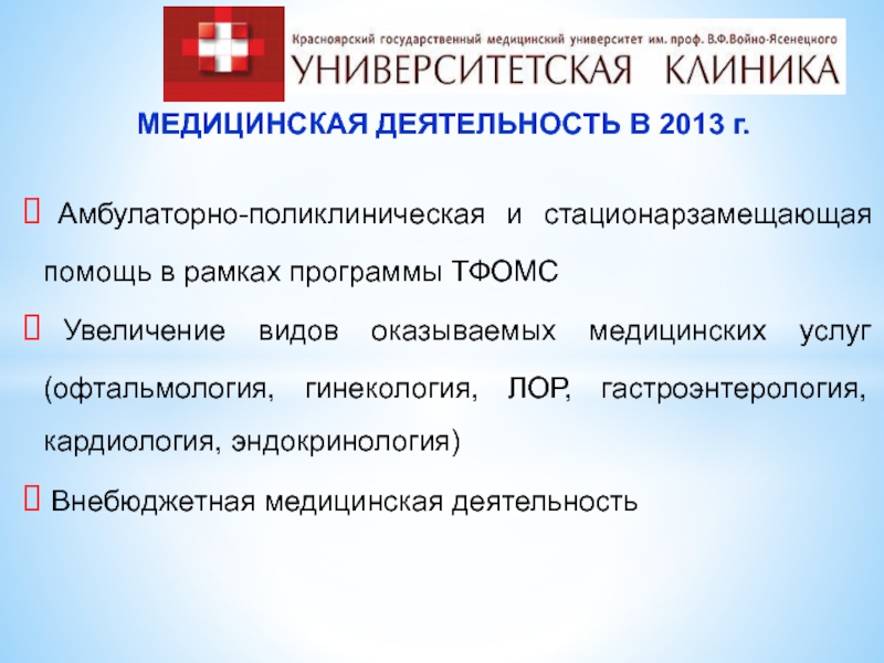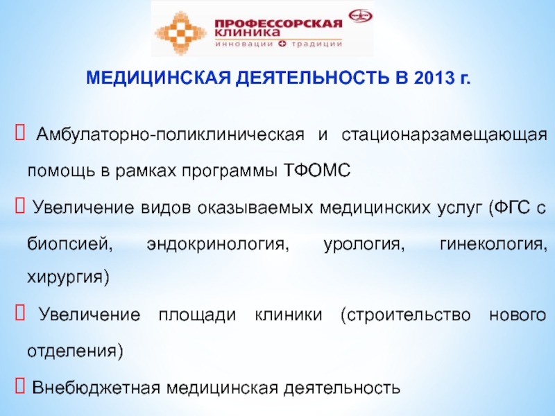 МЕДИЦИНСКАЯ ДЕЯТЕЛЬНОСТЬ В 2013 г.