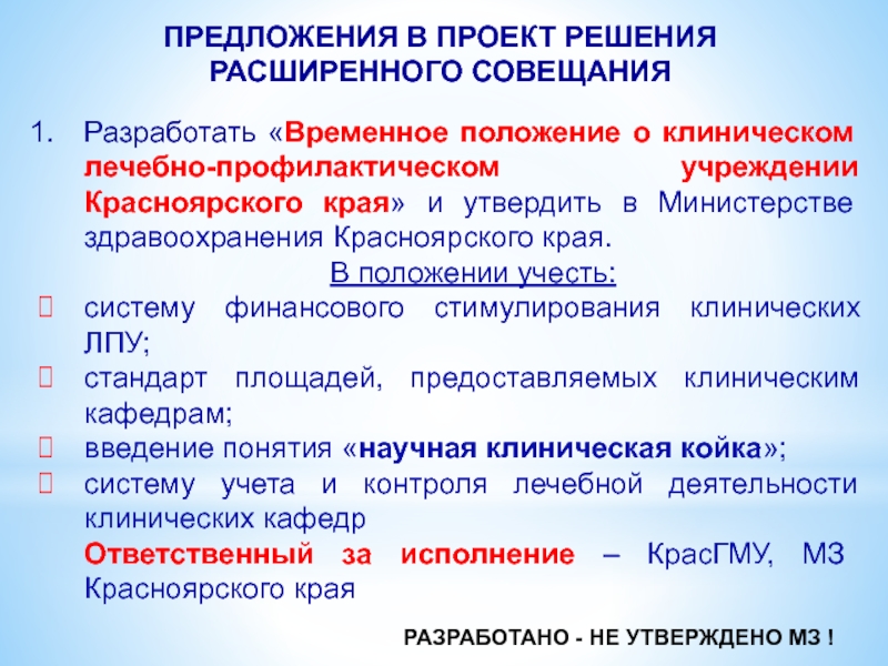 РАЗРАБОТАНО - НЕ УТВЕРЖДЕНО МЗ !