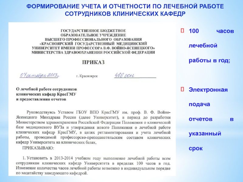 Формирование учета и отчетности по лечебной работе сотрудников клинических кафедр, взаимодействие с новыми клиническими базами