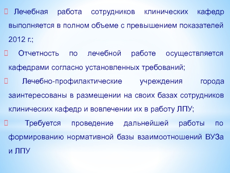 Работа с органами здравоохранения (Договор с МЗ, типовой договор с клиническими базами, Положение о клиническом ЛПУ)