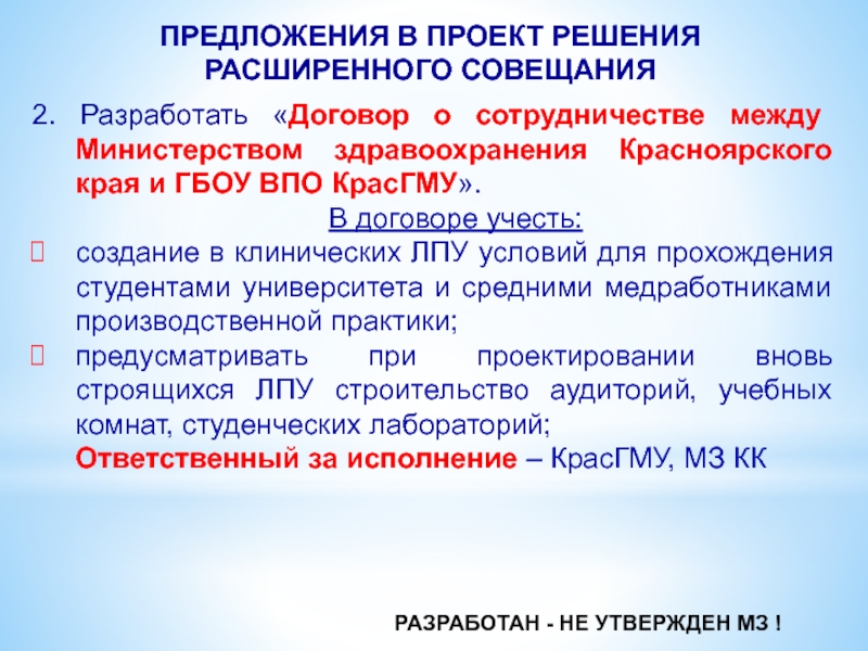 РАЗРАБОТАН - НЕ УТВЕРЖДЕН МЗ !