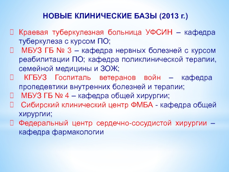 НОВЫЕ КЛИНИЧЕСКИЕ БАЗЫ (2013 г.)