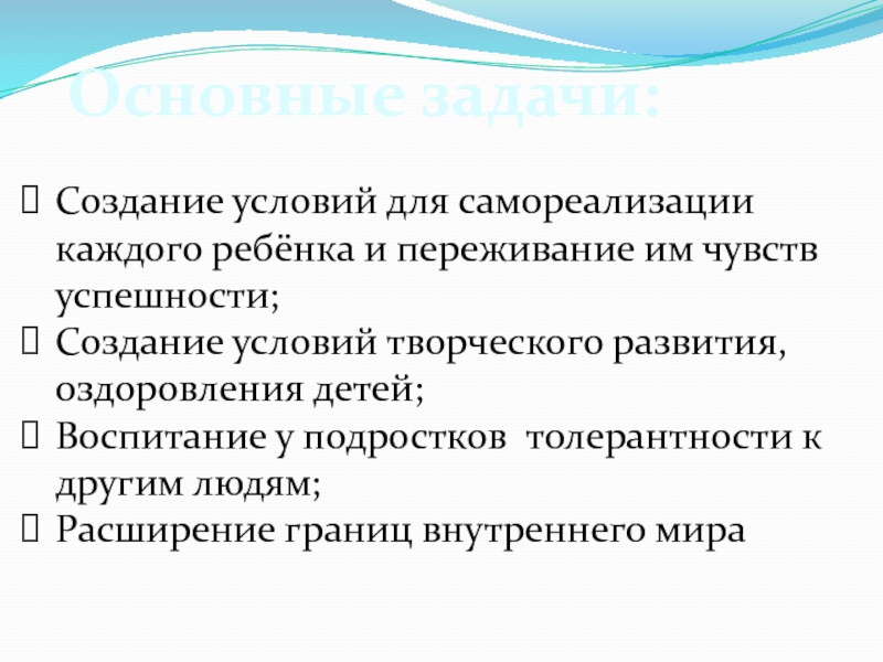 Создание условий для самореализации каждого ребёнка и переживание им чувств