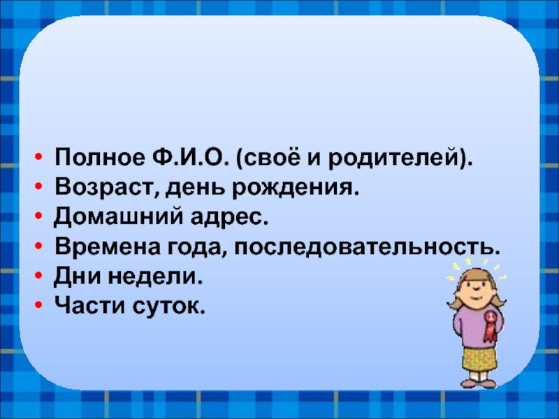 Полное Ф.И.О. (своё и родителей).